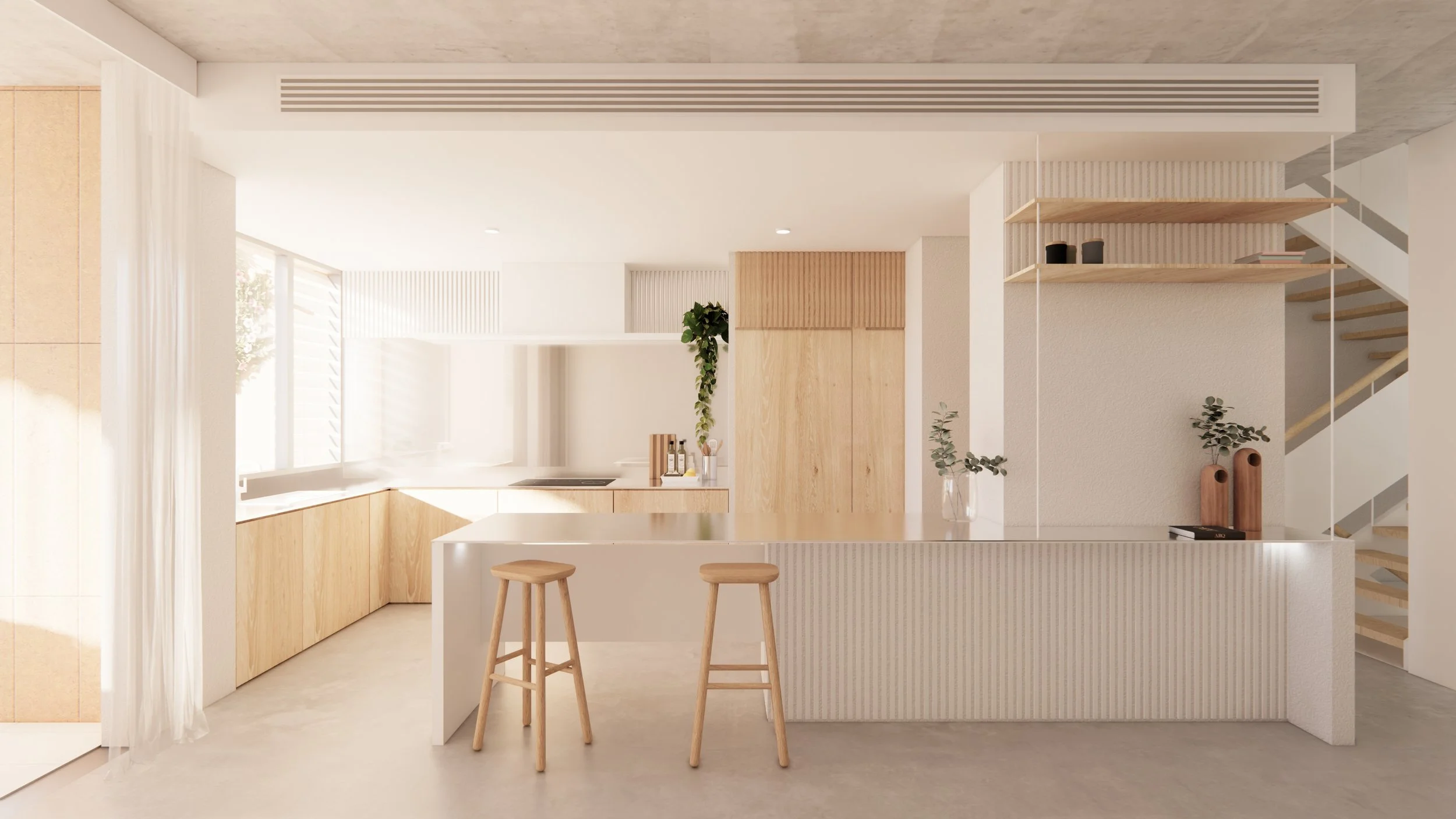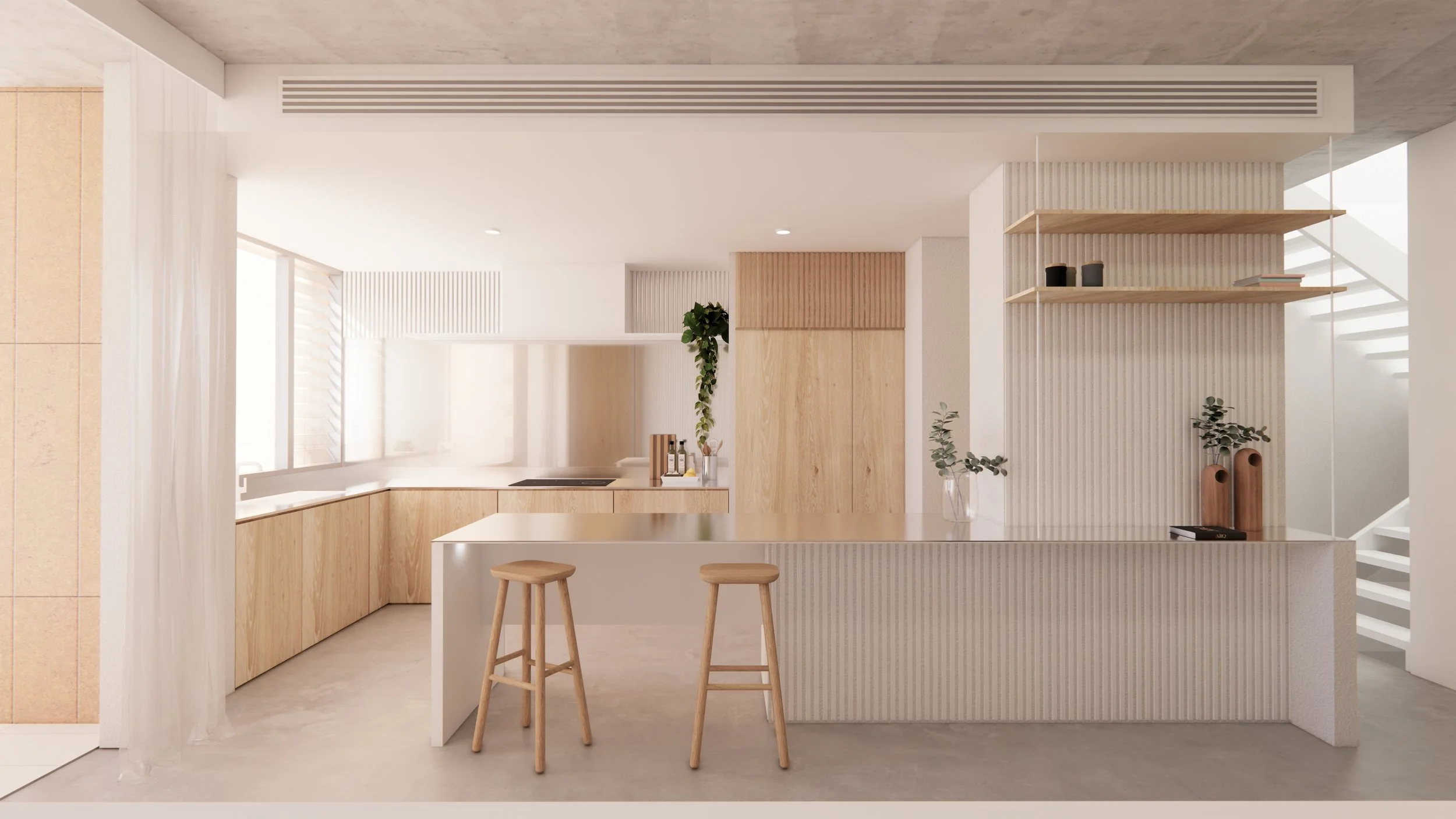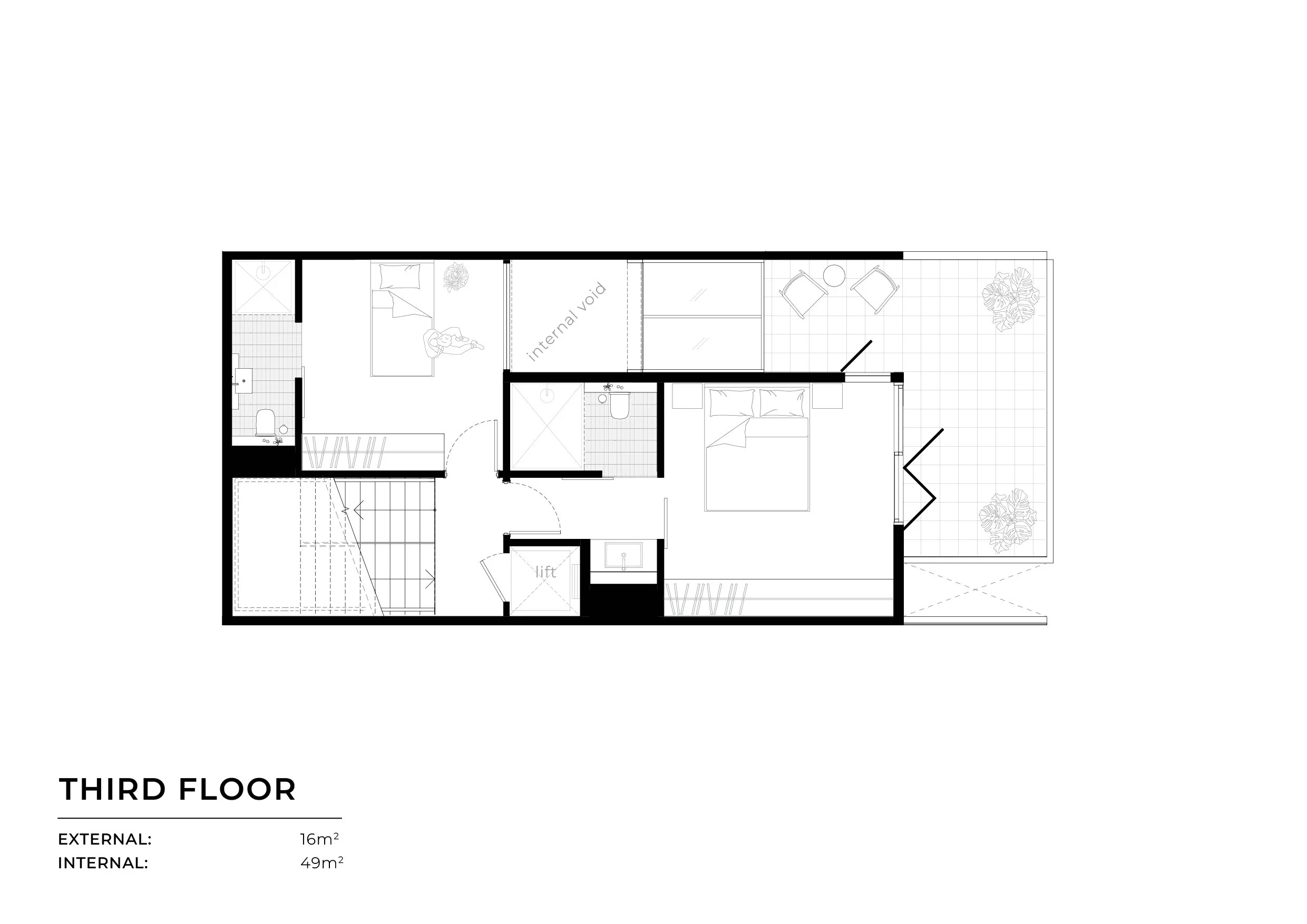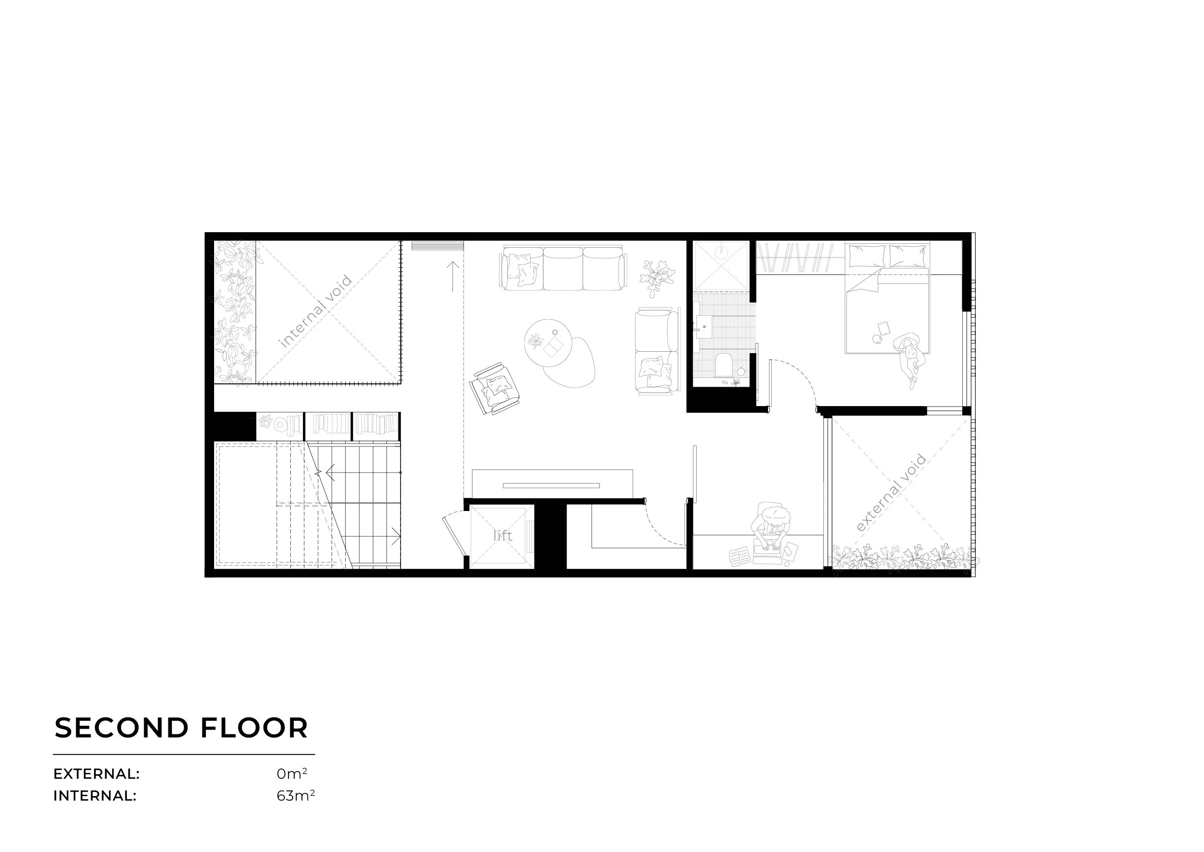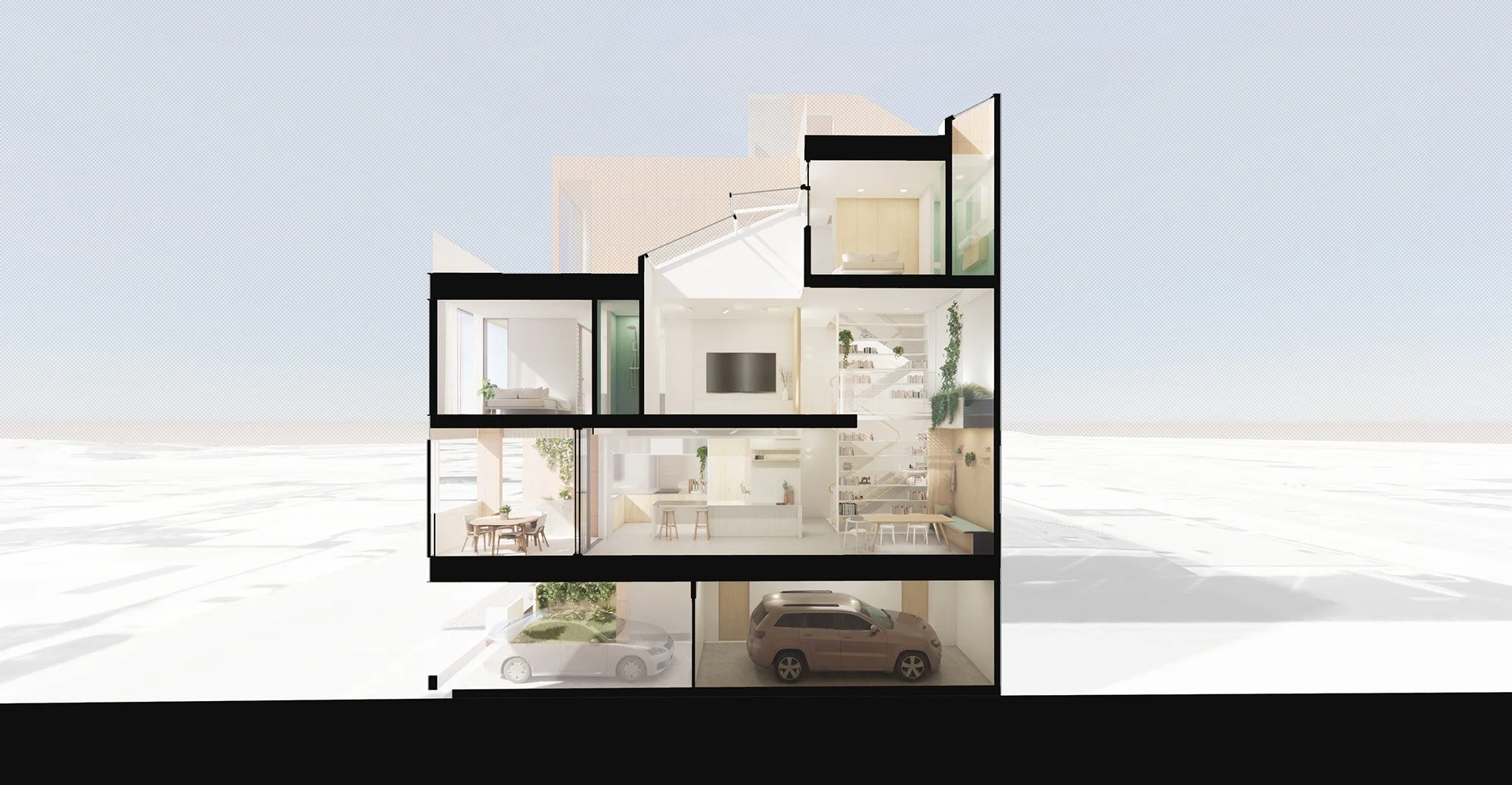 Clever design allows natural light and breeze to access all levels through interconnected voids, creating a sense of spaciousness and warmth throughout.